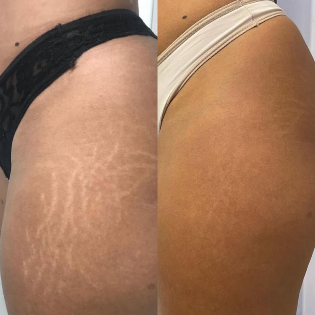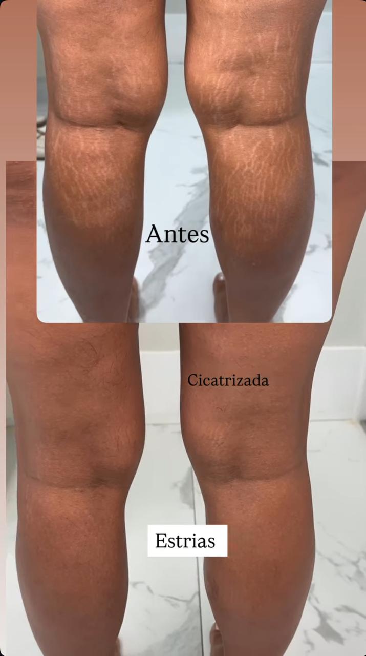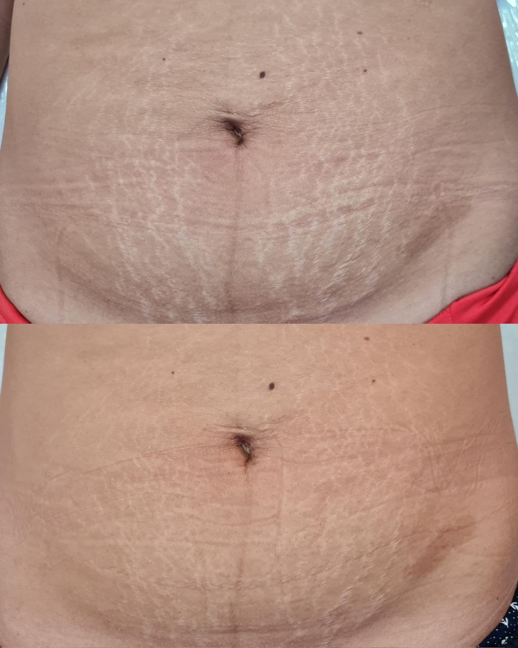 Melhora significativa da aparência das estrias (tanto recentes quanto antigas).